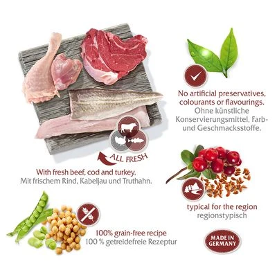- Getreidefrei – auch für Hunde geeignet, die an einer Getreideunverträglichkeit leiden