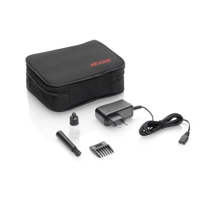 Lieferumfang: Moser Prima Akku-Schermaschine Typ: 1586, 1 Edelstahl-Scherkopf, 1 Vario-Aufsteckkamm (mit Raststufen), Reinigungsbürste, Netzteil, Bedienungsanleitung, Öl (5 ml), Aufbewahrungstasche