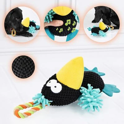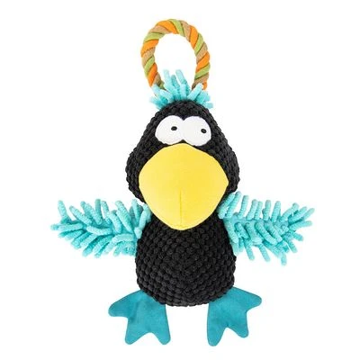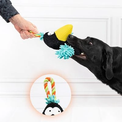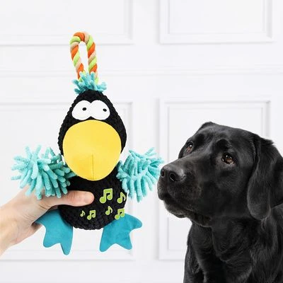Witziger Plüschvogel zum Spielen, Zerren und Apportieren für Hunde, detailreiches Design und kräftige Farben, große Schlaufe aus robustem Tau, mit integriertem Squeaker, aus Polyester
