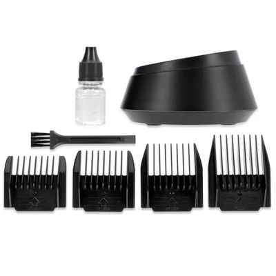 - Lieferumfang: 4x Abstandskamm, Öl, Reinigungsbürste, Samtbeutel, VDE-Adapter, Ladestation