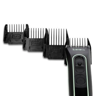 - Variable Schnittlängen: mit Kamm 3, 6, 9 und 12 mm, ohne Kamm zwischen 1 und 1,9 mm