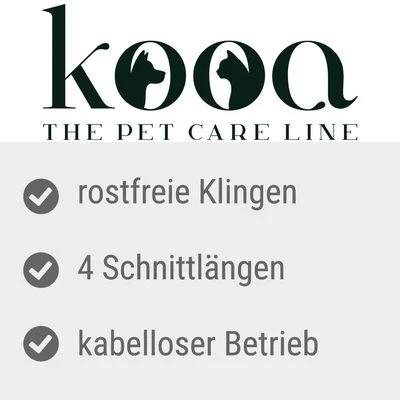 Die kooa Akku-Schermaschine GEAR Mini ist mit einem Scherkopf aus rostfreiem Stahl ausgestattet und kommt inklusive Abstandskammaufsatz. Die Schnittlänge lässt sich auf 3 bis 6 mm einstellen. Der Trimmer ermöglicht auch detaillierte Arbeiten an den Ohren und Pfoten. Für maximale Flexibilität bei der Schur sorgt der kabellose Betrieb. Alternativ können Sie das Gerät per Kabel an den Netzstrom anschließen, wobei die Akkus automatisch aufgeladen werden. Somit ist die Haustier-Schermaschine stets einsatzbereit.