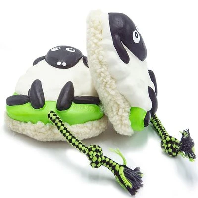 Niedliches Schäfchen mit Seil zum Kuscheln und Kauen für Hunde, animiert zum Kauen, unterstützt die Zahnpflege, kuschelige Rückseite, quietscht beim Hineinbeißen, aus Baumwolle, Latex & Polyester