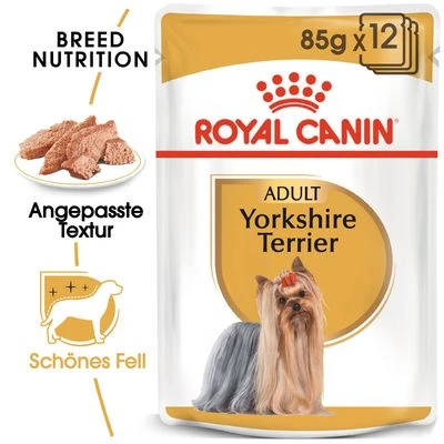 - Speziell auf die Rasse abgestimmtes Nassfutter für ausgewachsene Yorkshire Terrier ab 10 Monaten