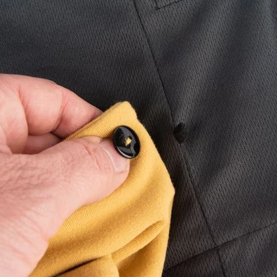 - An diversen Stellen anpassbar: Tunnelzüge an Kragen & Taille, Druckknöpfe an Fesseln