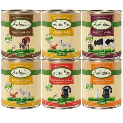 Lukullus Nassfutter-Naturkost für Feinschmecker-Hunde, mit liebevoll ausgesuchten Zutaten, frischem Fleisch, Gemüse, Obst & wertvollen Ölen. Naturbelassene Rezepturen in den klassischen Sorten im Mix testen!