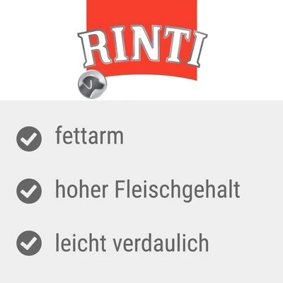 RINTI Leichte Beute ist ein kalorienreduziertes Nassfutter für Hunde, das mit einer fettarmen und leicht verträglichen Zusammensetzung hochwertiger Zutaten punktet. Es ist reich an magerem Huhn und zeichnet sich durch einen köstlichen Geschmack in mehreren Sorten aus.