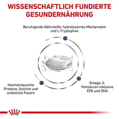 Royal Canin Expert Calm Small Dogs Trockenfutter für Hunde wurde entwickelt, um unterstützend bei ängstlichem Verhalten Ihres kleinen Hundes zu helfen. Es handelt sich um ein vollwertiges Alleinfutter, dessen Rezeptur speziell auf Hunde kleiner Rassen abgestimmt wurde. Enthalten sind beispielsweise hydrolysiertes Milchprotein und L-Tryptophan.