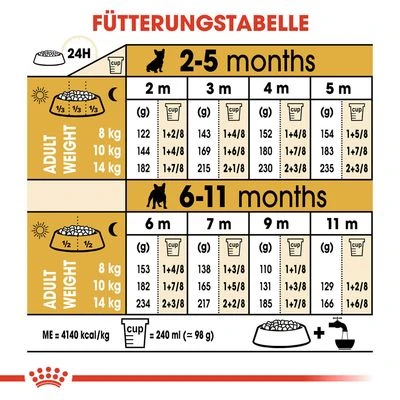 Alle Royal Canin Produkte durchlaufen eine umfassende Qualitätskontrolle, um eine optimale Futterqualität zu gewährleisten und den individuellen Ernährungsbedürfnissen sowie dem Lebensstil Ihres Hundes gerecht zu werden. Das bedeutet, mit Royal Canin French Bulldog Puppy bieten Sie Ihrem Welpen eine hochwertige und ausgewogene Ernährung.