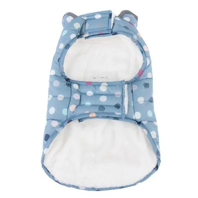 Niedlicher Hundemantel, mit hübschem Pünktchen-Muster, gesteppt & weich gefüttert, mit kuscheligem Innenflies aus Fell-Imitat, hoher Kragen mit reflektierendem Saum, maschinenwaschbar, Farbe: hellblau