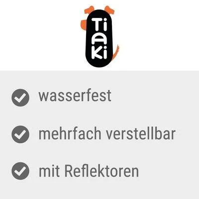 Mit den Reflektoren an der Hüfte und am Kragen sorgt er nicht nur für erhöhte Sichtbarkeit, sondern bietet mit seinem doppelten hohen Kragen auch zusätzlichen Schutz vor Kälte. Das An- und Ausziehen des TIAKI Hundemantel Leonardos erfolgt über den Kopf und erweist sich dank des einfach zu bedienenden Klickverschlusses als Kinderspiel.