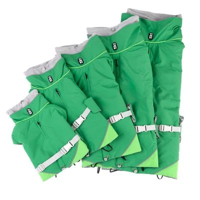 Farbenfroher Wintermantel für Hunde, wasserdichtes Obermaterial, umschlagbarer Kragen, kuscheliger Schlauchkragen aus Fleece, mit Reflektor-Paspeln, stufenlos verstellbarer Bauchgurt, Farbe: grasgrün