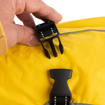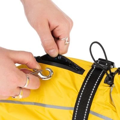Die integrierten Kordelzüge am Hals oben und unten sowie am hinteren Saum ermöglichen es dir, die perfekte Passform für deinen Hund zu finden. Beim Erreichen des optimalen Sitzes hilft auch der stufenlos verstellbare Bauchgurt mit praktischem Klickverschluss, der außerdem dazu beiträgt, dass das An- und Ausziehen des Regenmantels ruckzuck vonstattengeht. Der TIAKI Hunderegenmantel Buzz ist komplett wasserdicht und verfügt über einen wassergeschützten Reißverschluss und versiegelte Nähte, die nicht einen Tropfen durchlassen. Der nächste Regenschauer kann kommen!