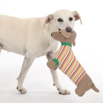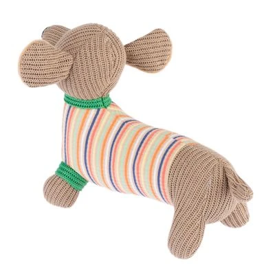 Drolliges Hundespielzeug, im netten Dackel-Design, hochwertige Strickoptik, quietscht schön und animiert zum Spielen, gut zu werfen, ohne verschluckbare Kleinteile, maschinenwaschbar, aus Polyester