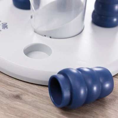 Dazu lassen sich die grünen, hohlen Kegel anheben und mit kleinen Leckereien bestücken. Fortgeschrittene Spürnasen schaffen es sogar, die ganz oben im Tower versteckten Häppchen herauszumanövrieren. Die drei blauen Einschübe verfügen jeweils über eine Schlaufe, an der Ihr Hund ziehen kann, so dass die Leckerlis herunter- und letztlich unten herausfallen. Die besondere Herausforderung liegt dabei darin, die Etagen in der richtigen Reihenfolge zu bedienen.